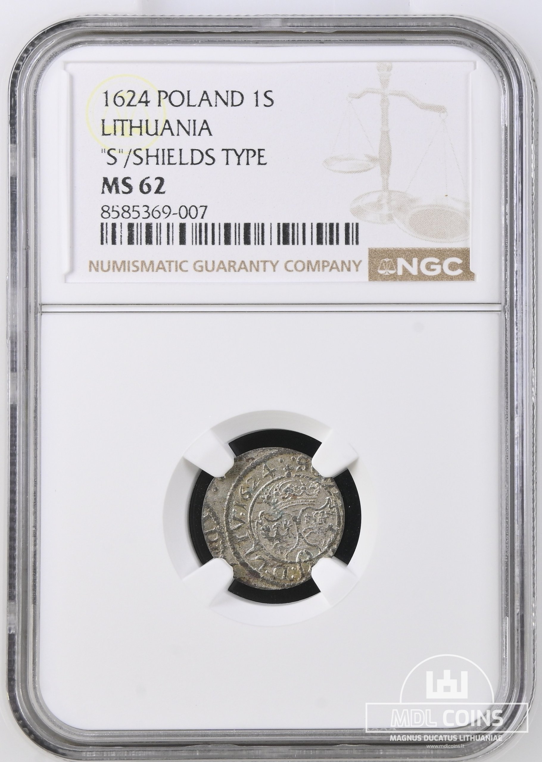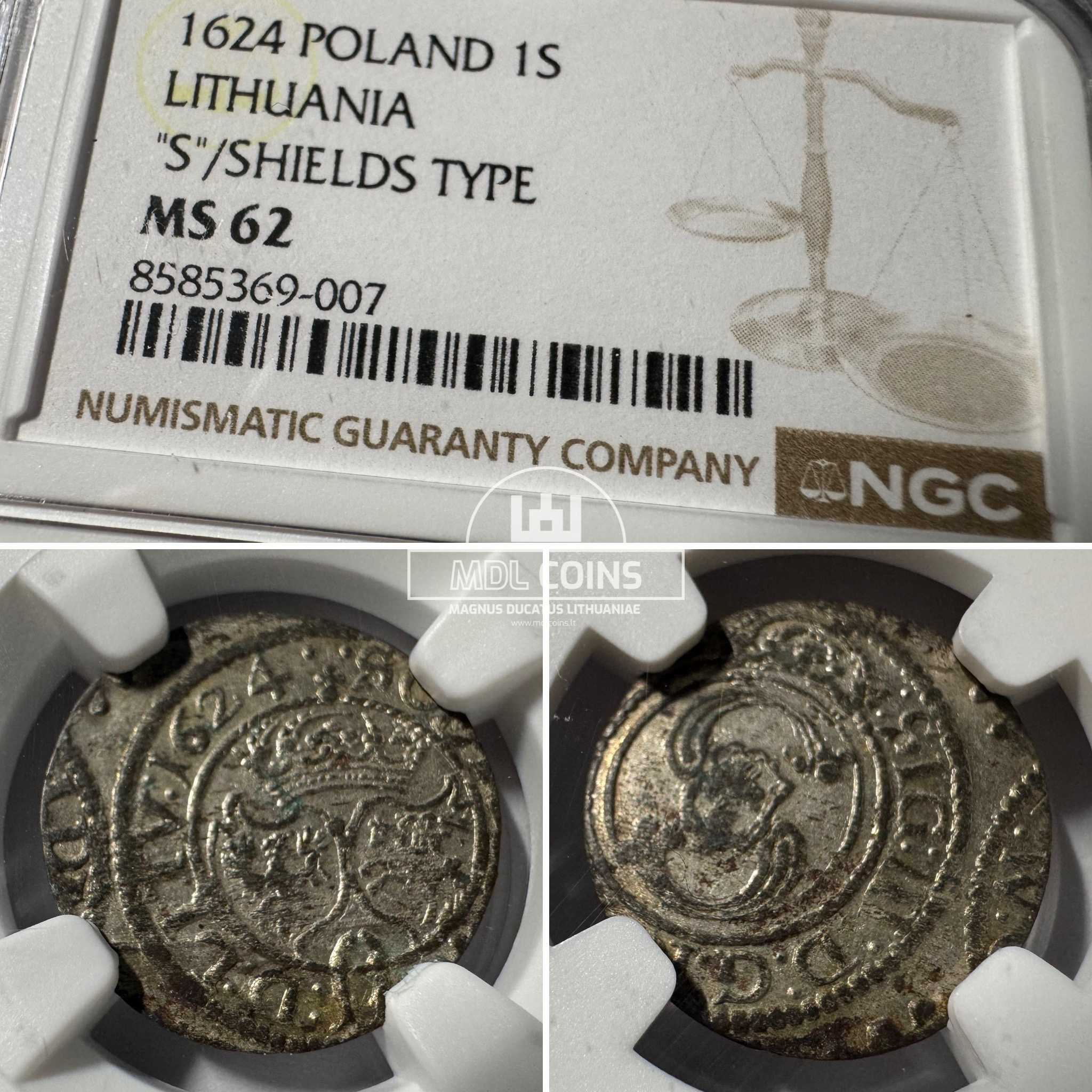 1624 metų Žygimanto Vazos šilingas – NGC MS62 – (Sesija Nr.89 – Pabaiga 20260408 – 22.08 val. + 2 min. „Anti-sniping”)