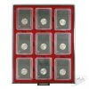 - Kiekvienas stalčius talpina po 9 sertifikuotas monetas.