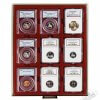 Lindner dėžė monetoms – komplektas su 10 stalčių talpinančių 90 vnt. sertifikuotų monetų