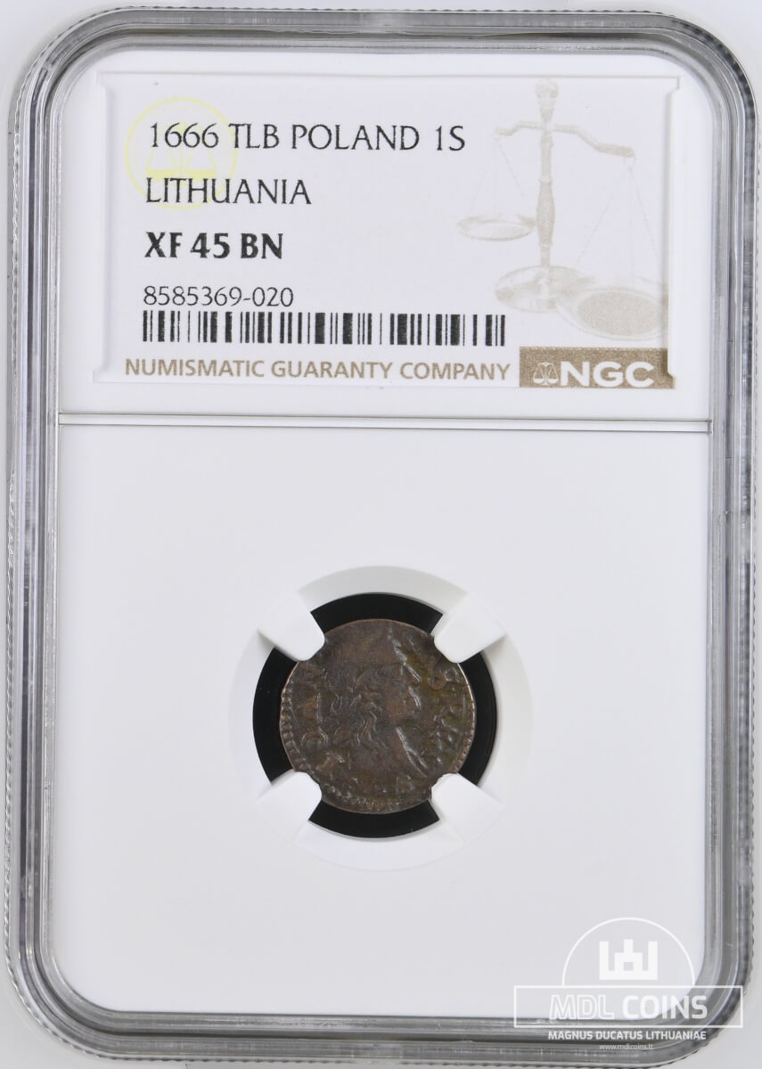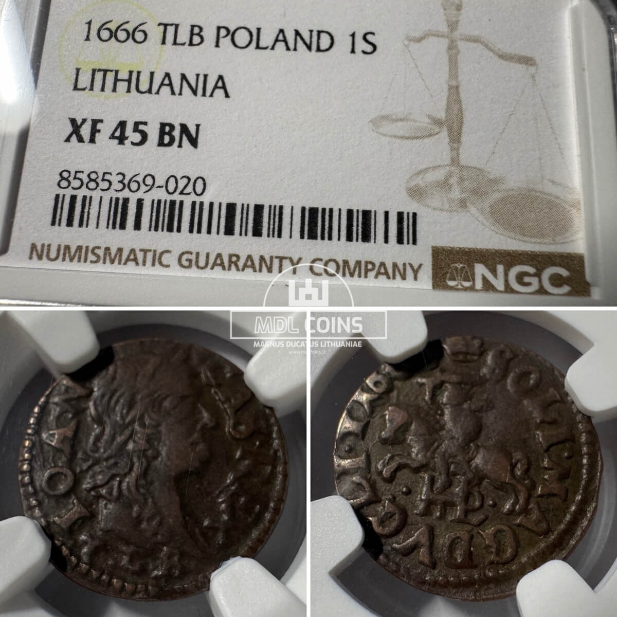 1666 metų Jono Kazimiero šilingas – NGC XF45BN
