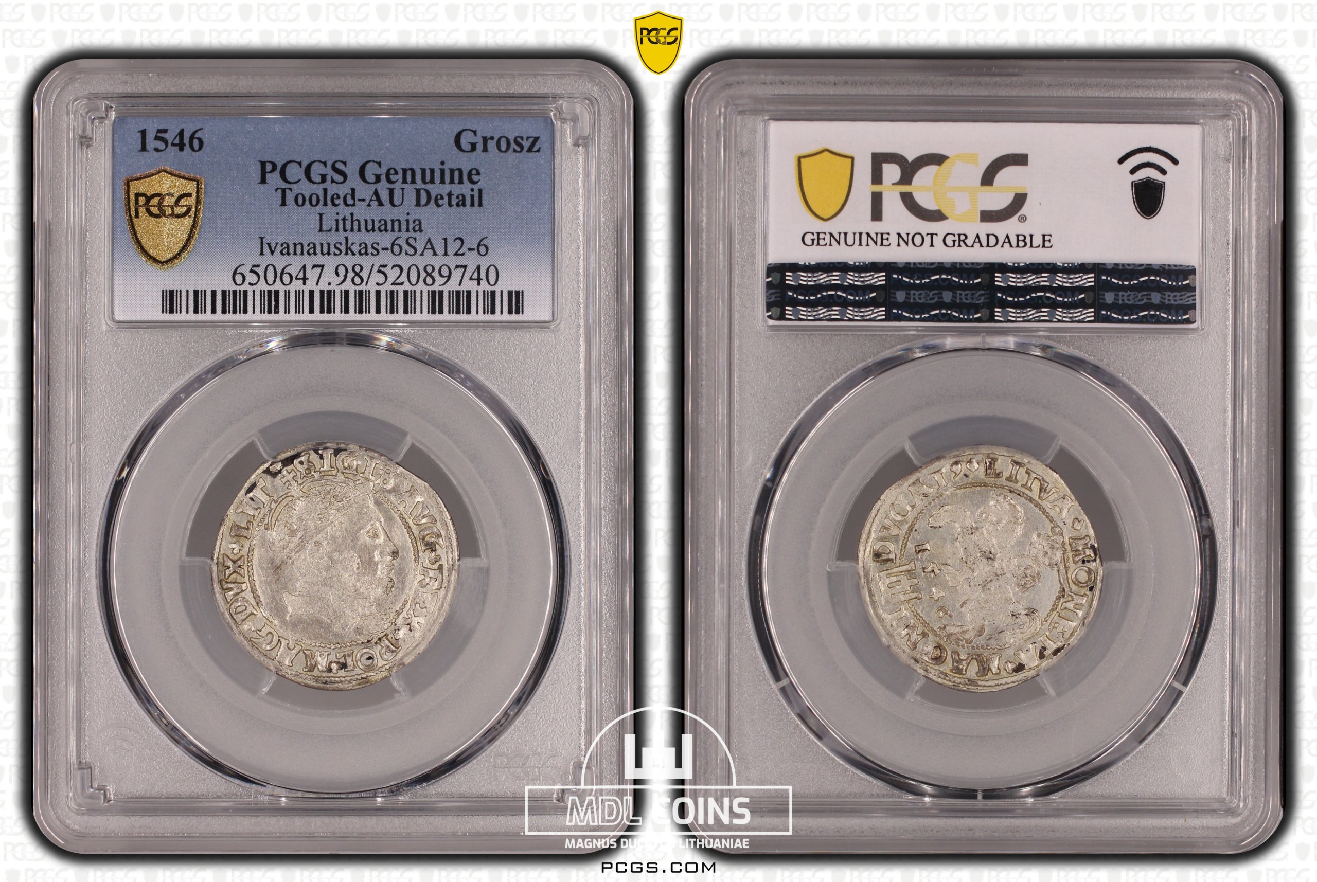 1546 metų Žygimanto Augusto grašis – Katalogo nr. 6SA12-6 – PCGS AU Detail