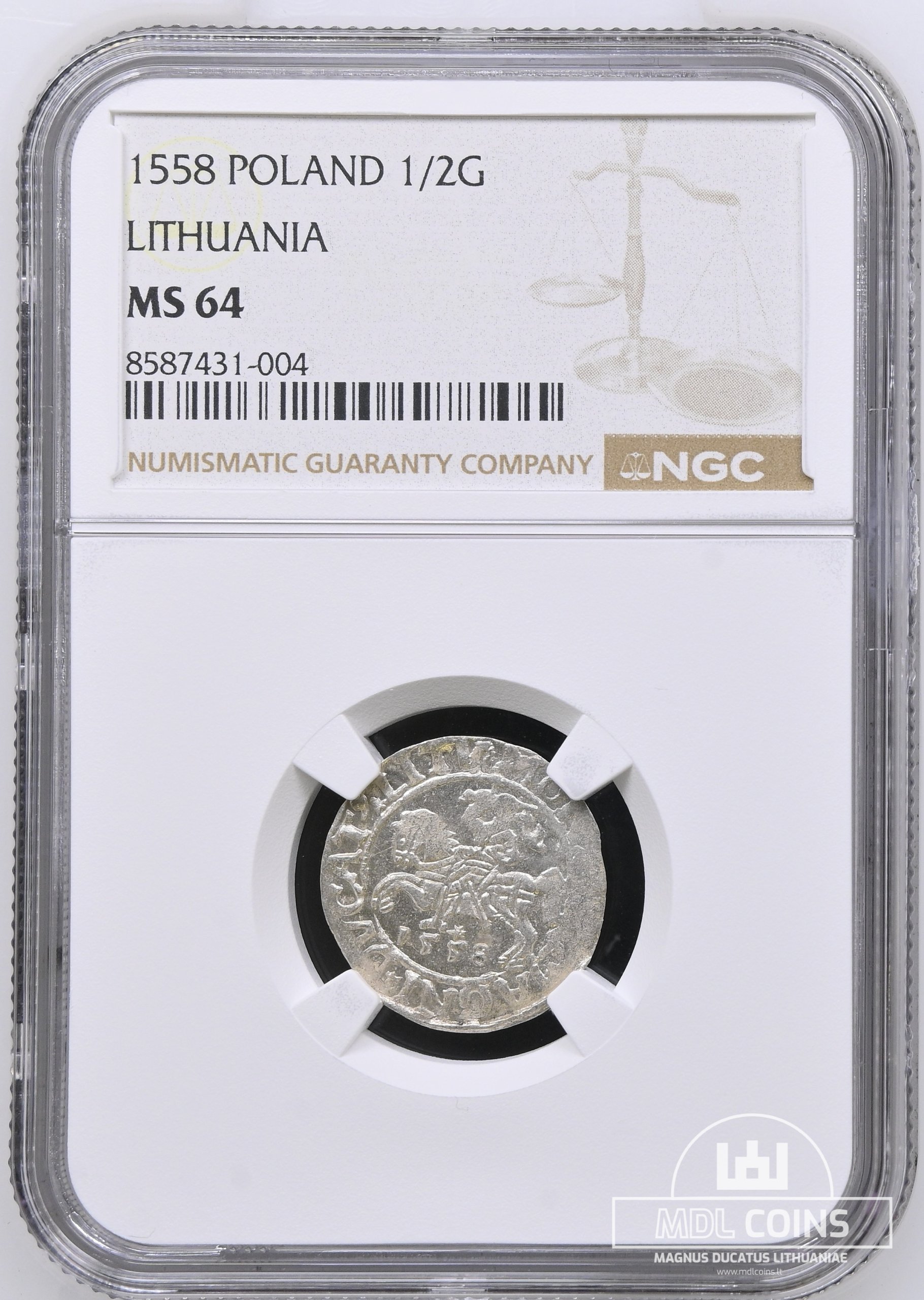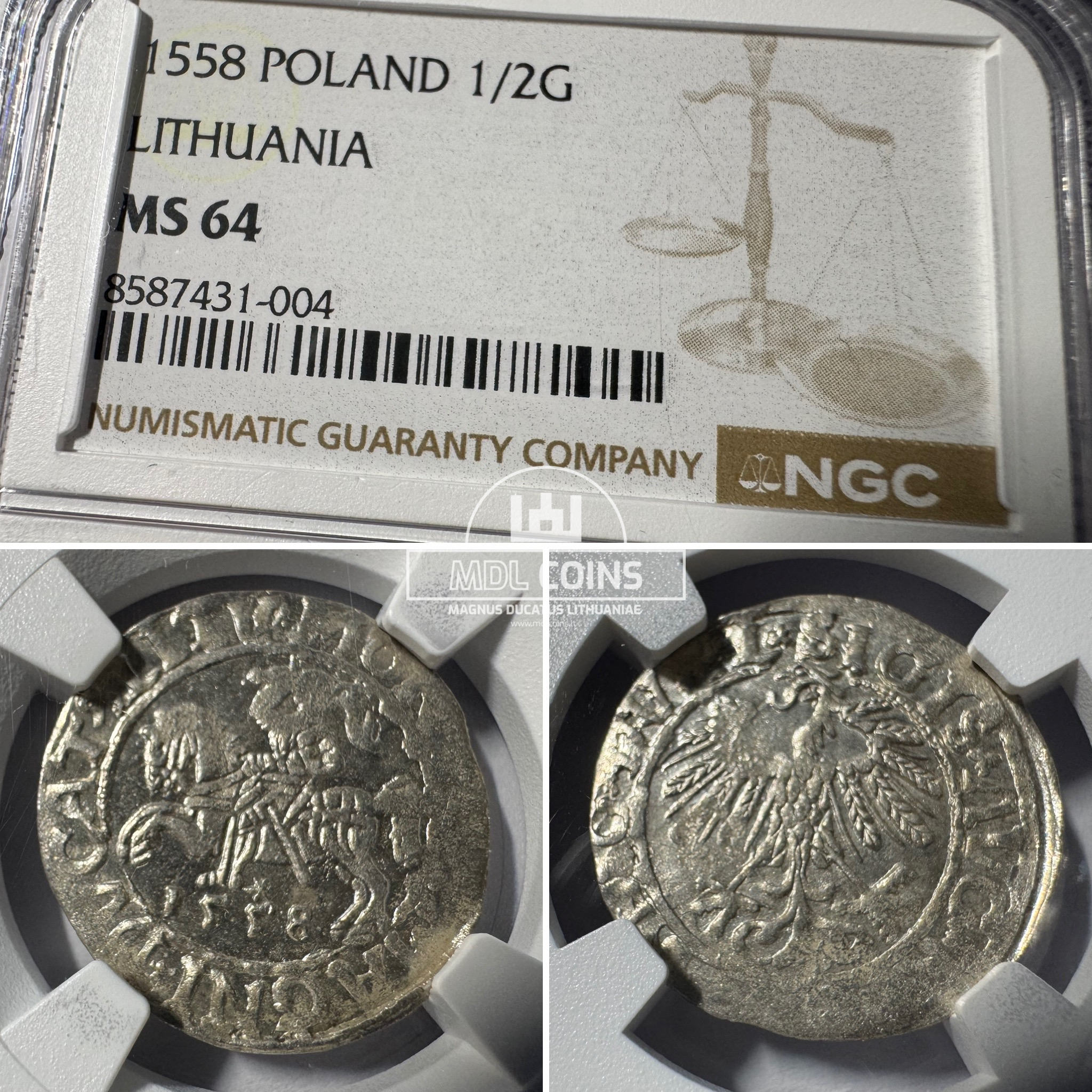 1558 metų Žygimanto Augusto 1/2 grašio – NGC MS64