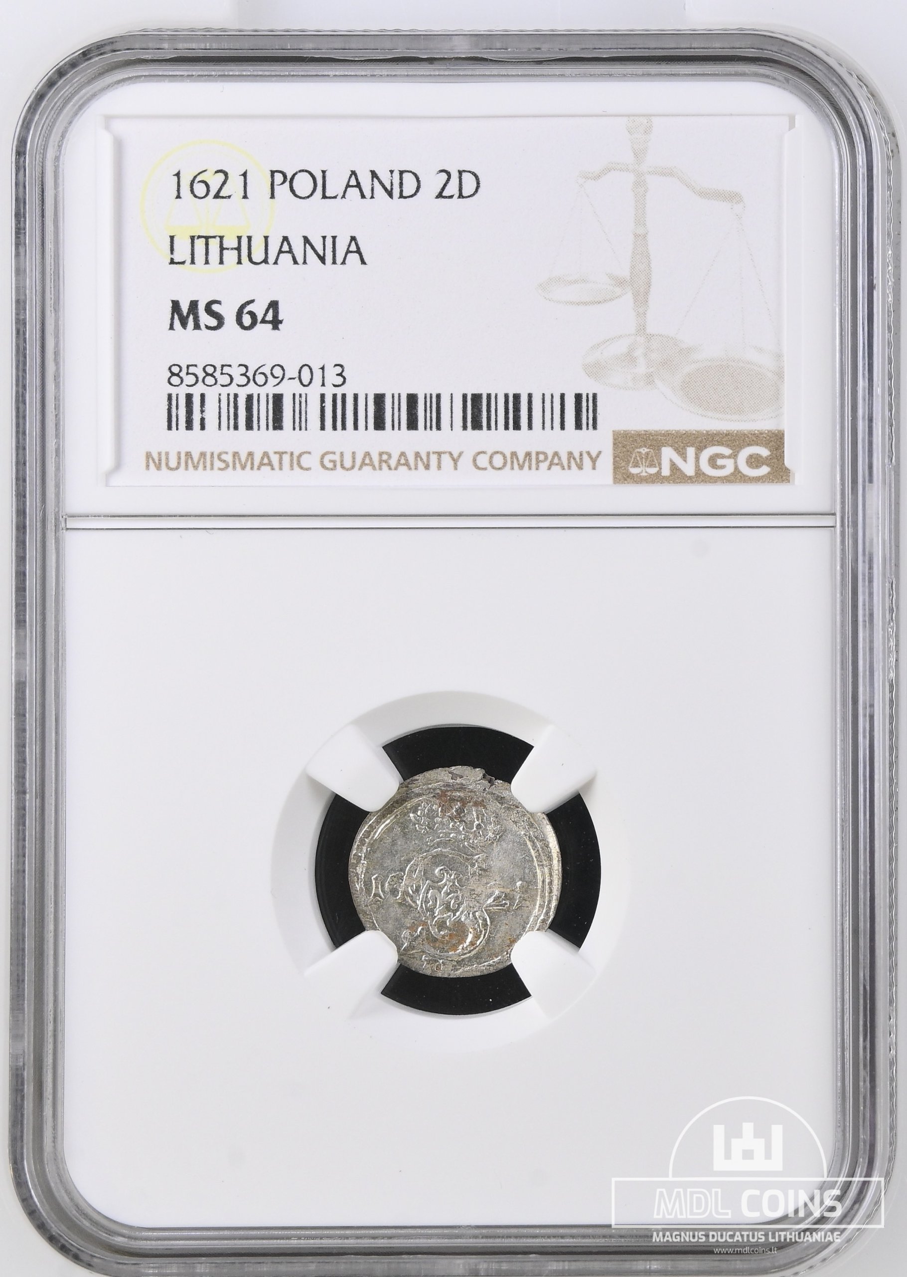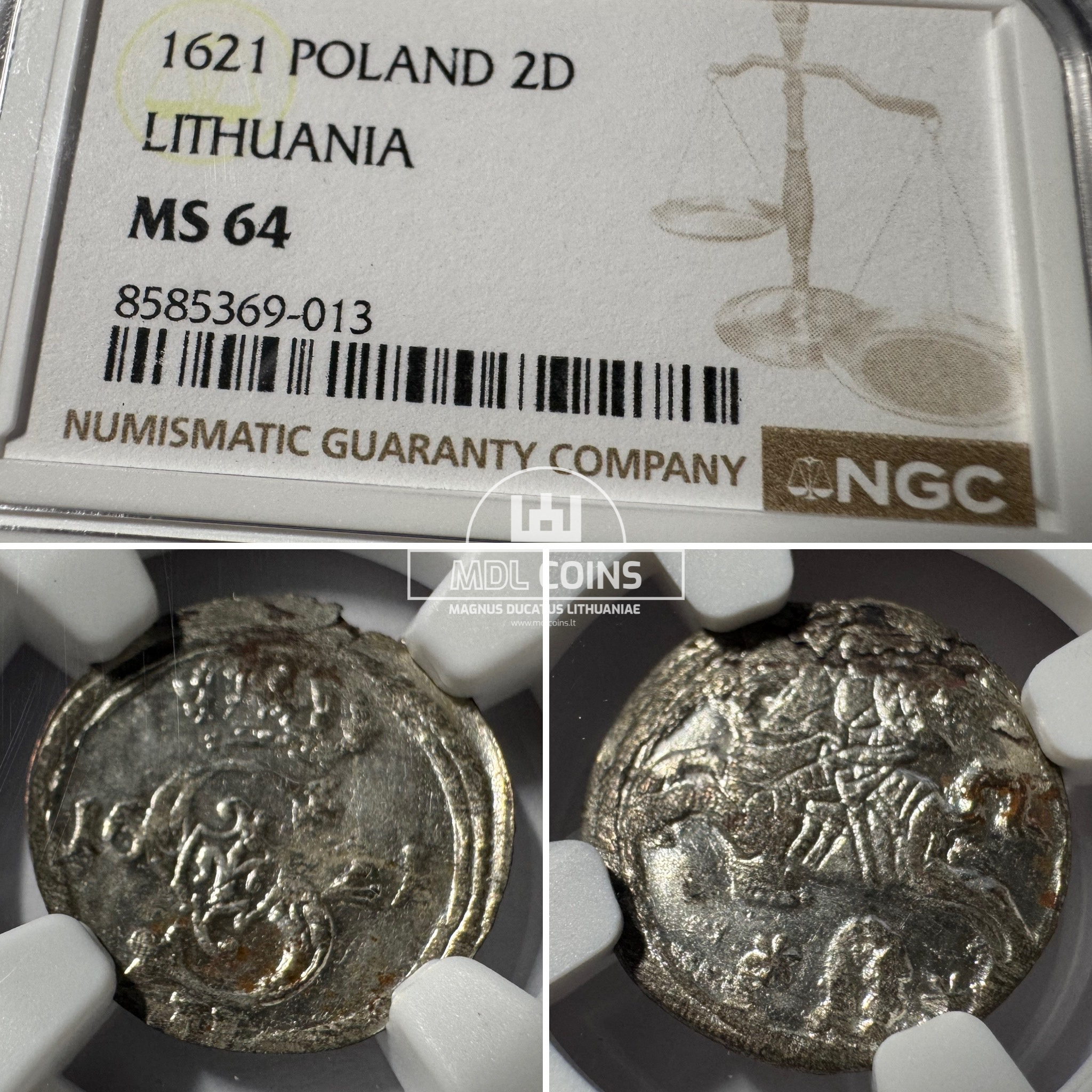 1621 metų Žygimanto Vazos 2 denarai – NGC MS64
