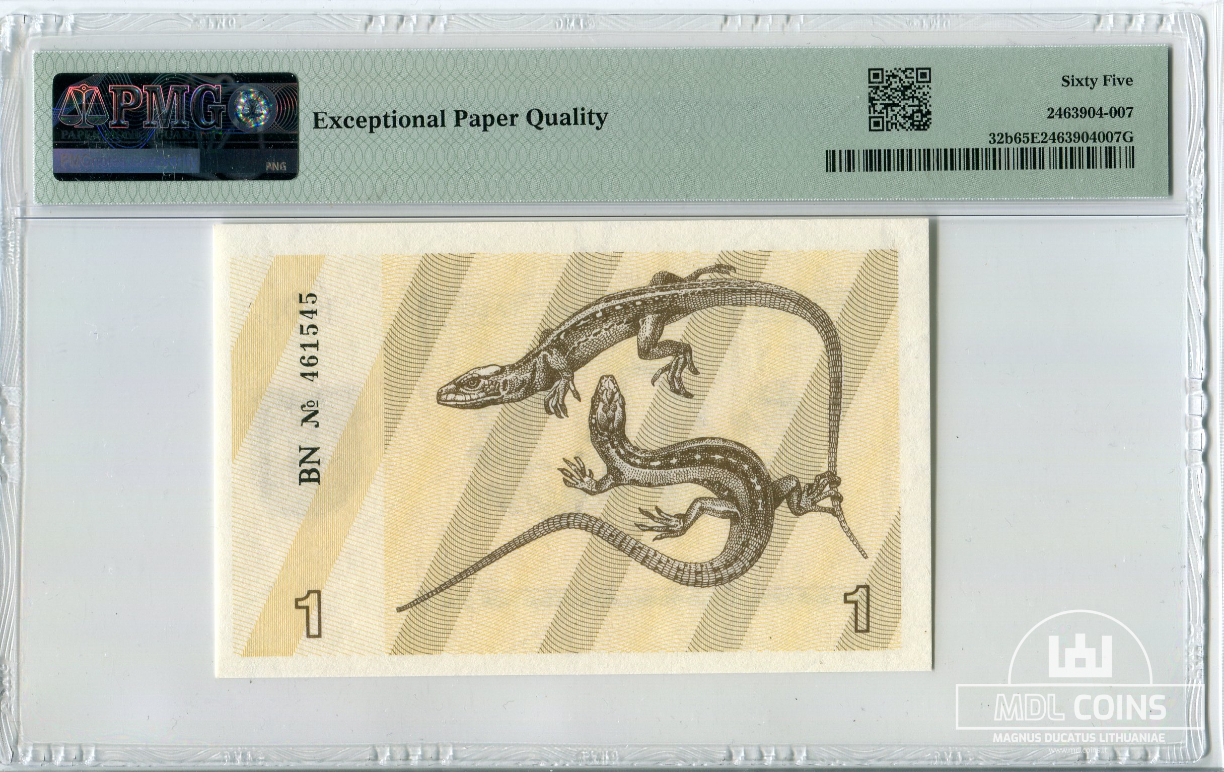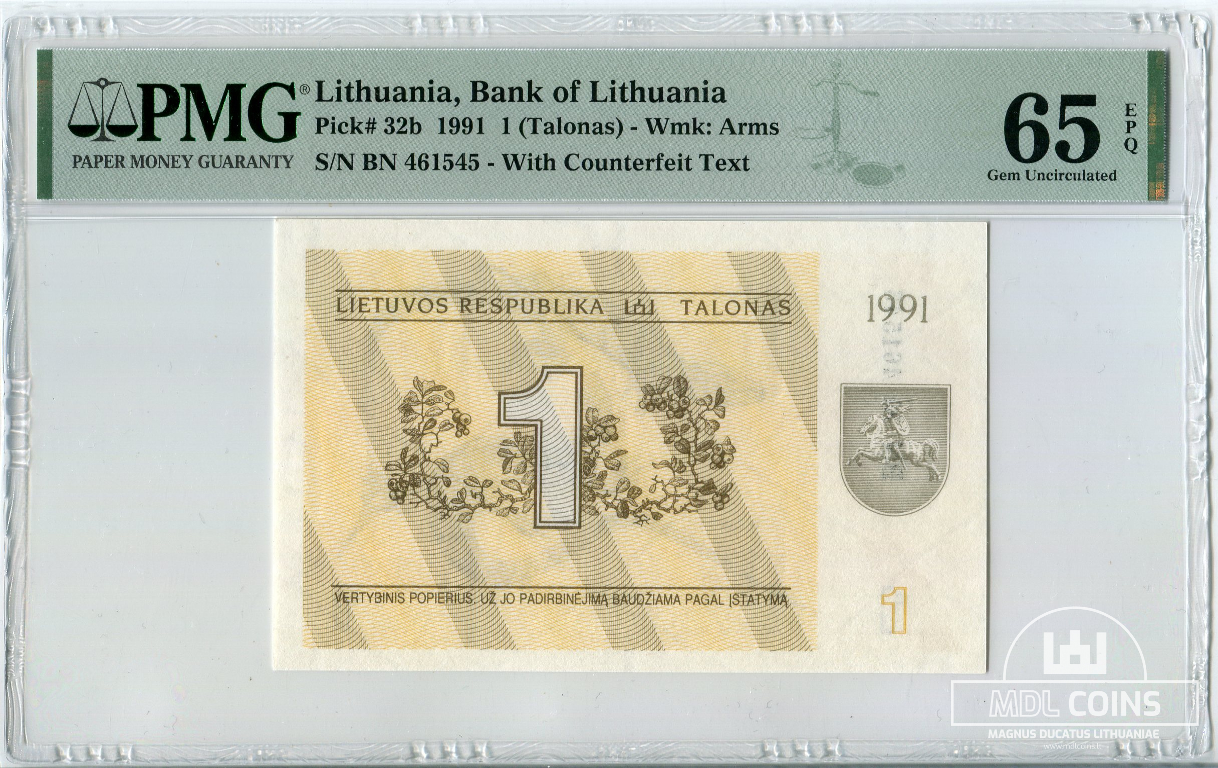 1991 metų 1 talonas (su užrašu) – BN serija – PMG 65 Gem Uncirculated EPQ