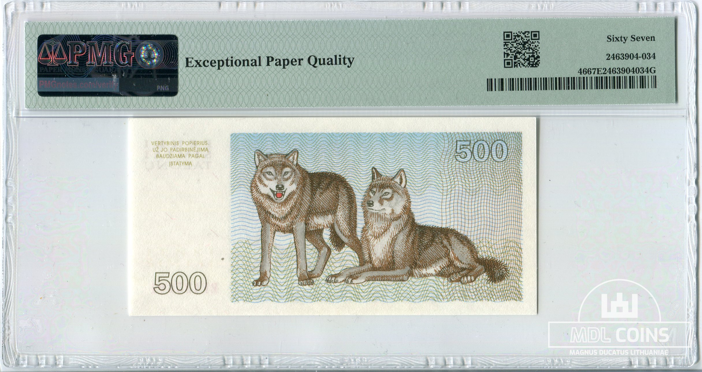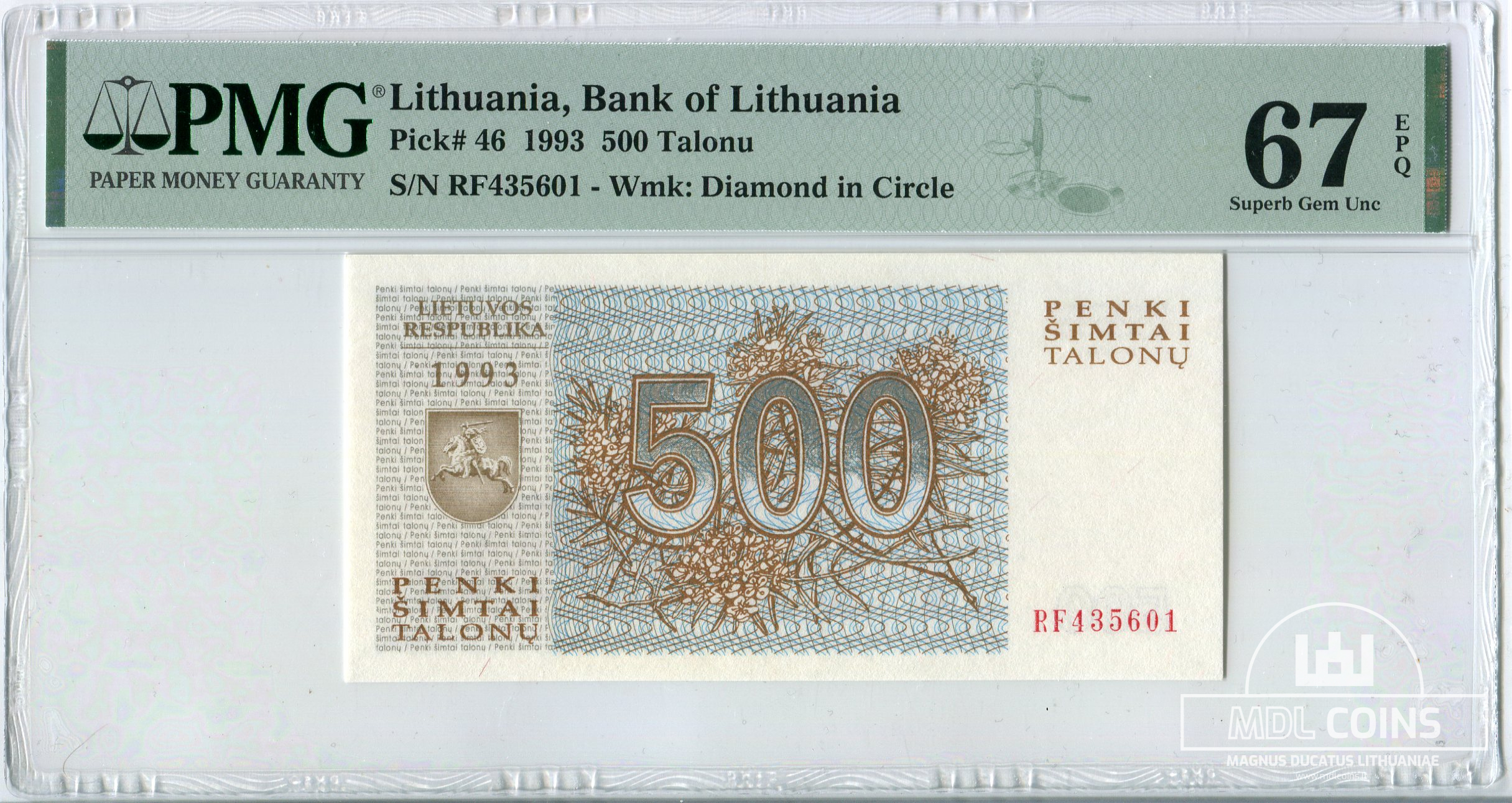 1993 metų 500 talonų – RF serija – PMG 67 Superb Gem Unc EPQ