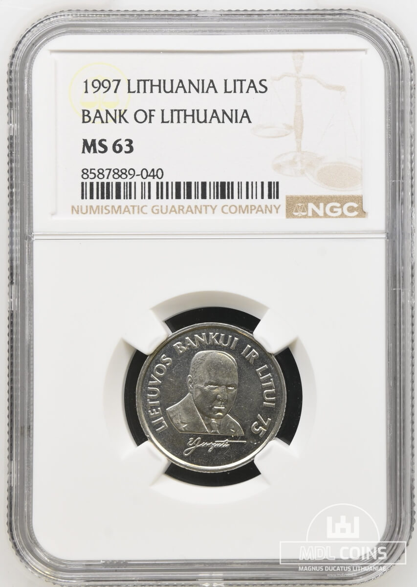 1997 metų sertifikuotas 1 litas – „Jurgutis” – NGC MS63