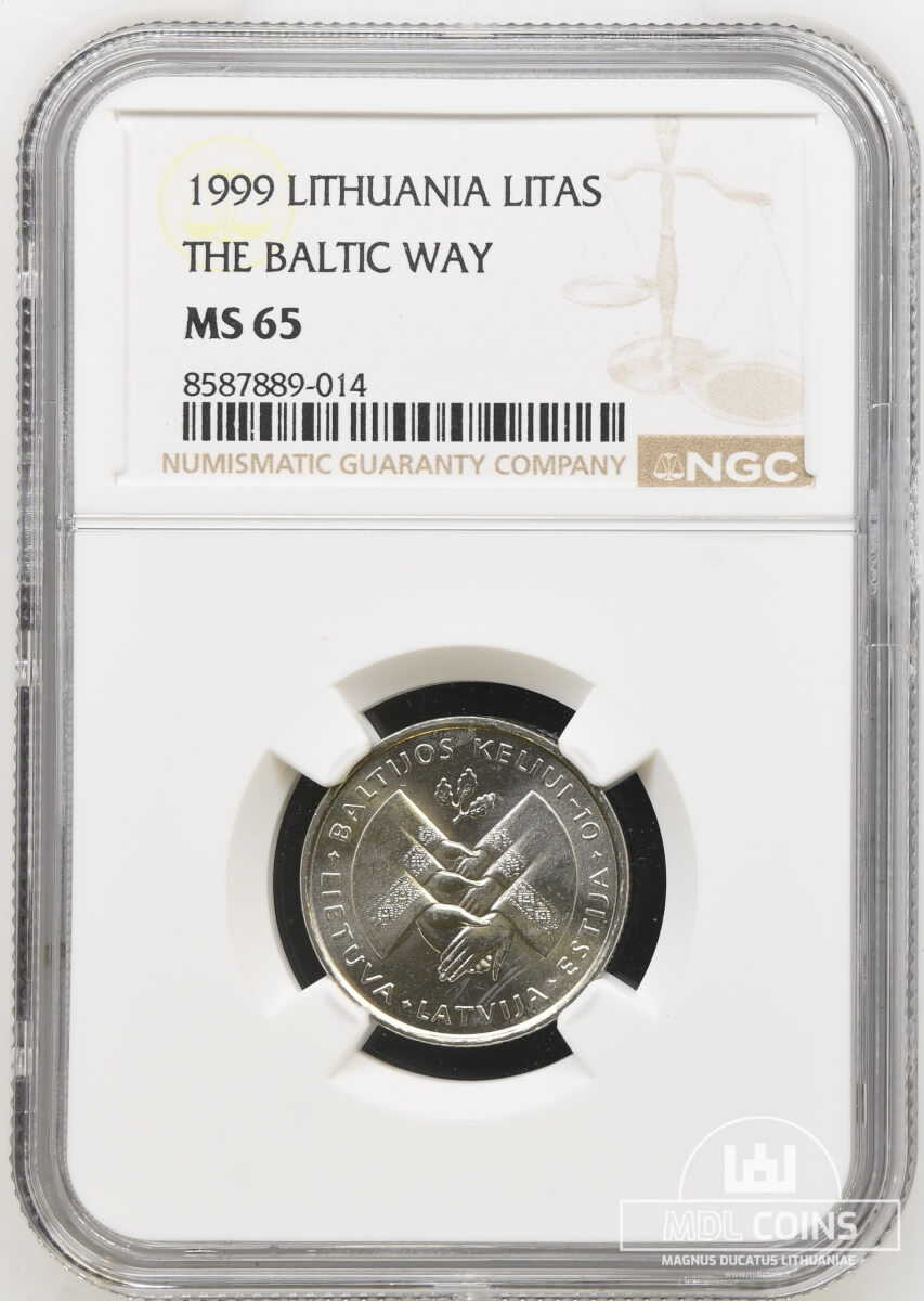 1999 metų sertifikuotas 1 litas – „Baltijos kelias” – NGC MS65