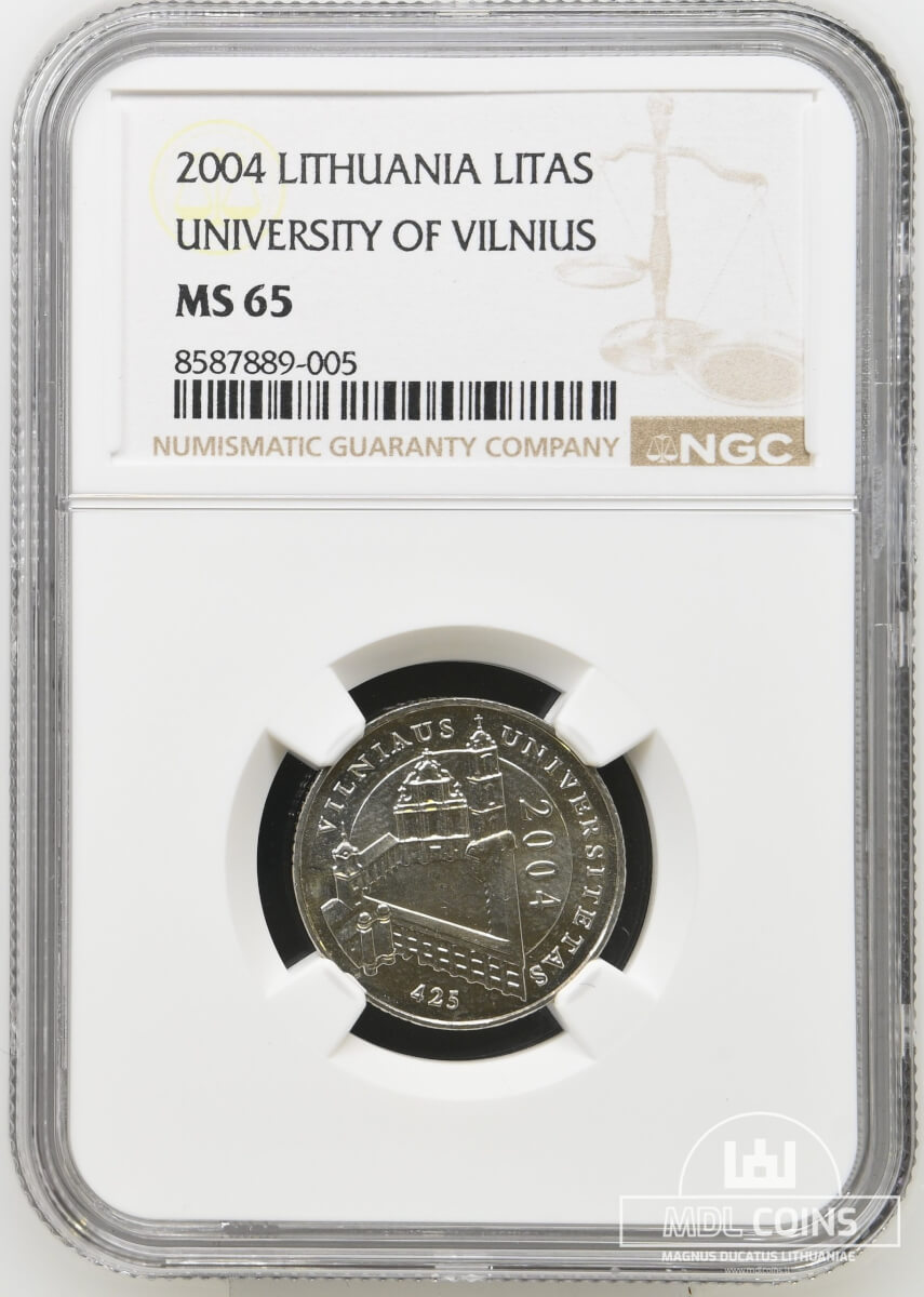 2004 metų sertifikuotas 1 litas – „Vilniaus universitetas” – NGC MS65