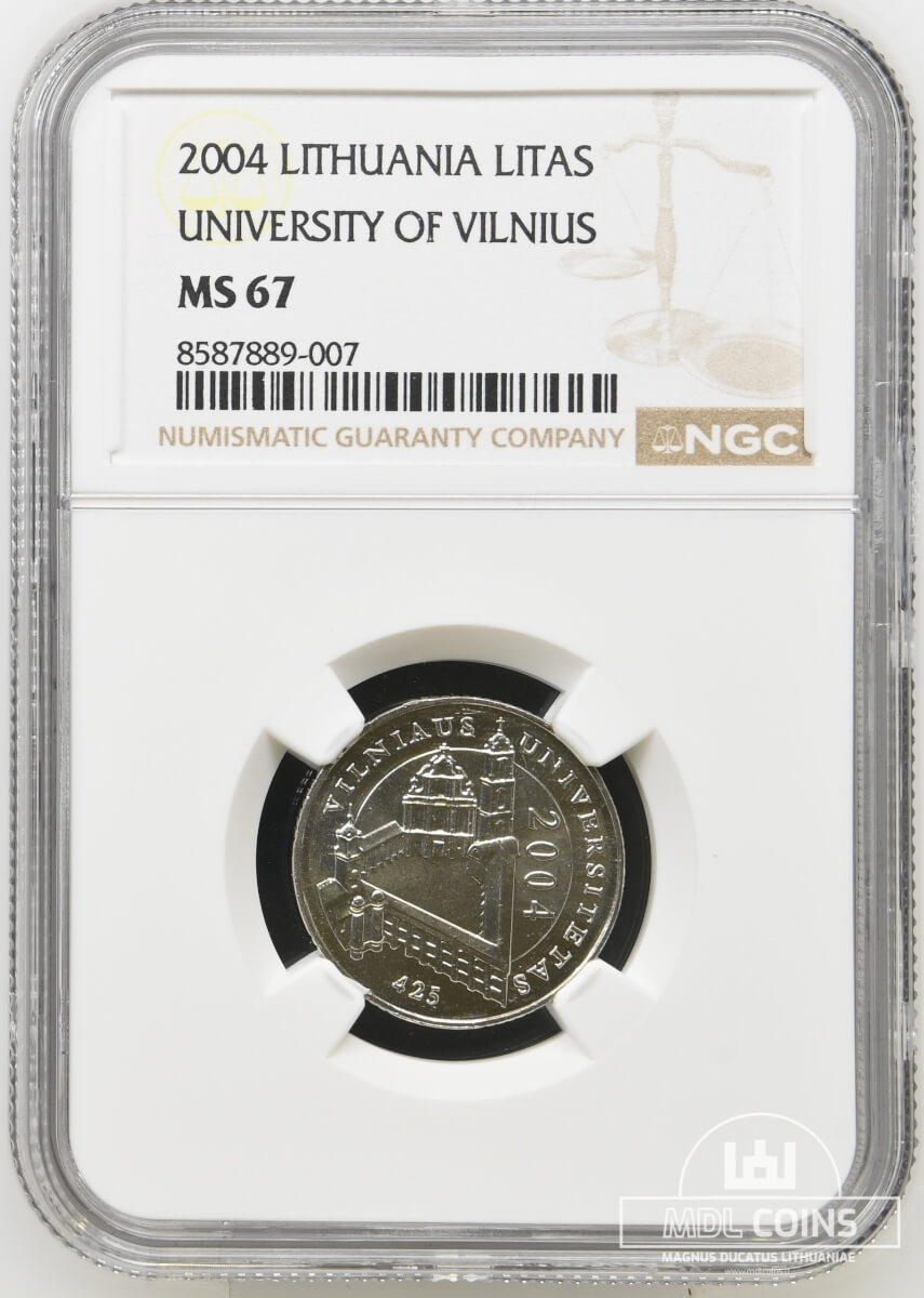 2004 metų sertifikuotas 1 litas – „Vilniaus universitetas” – NGC MS67