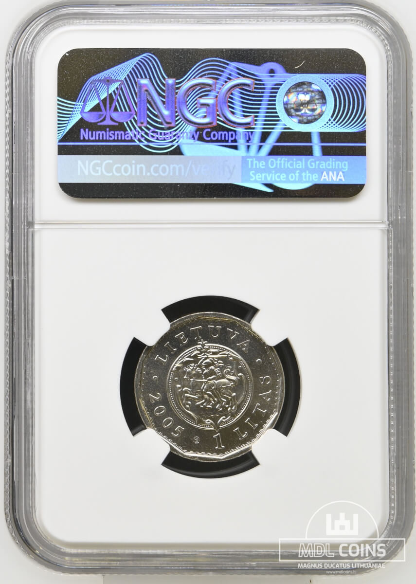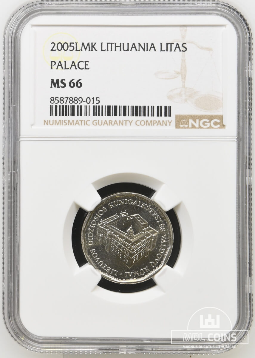 2005 metų sertifikuotas 1 litas – „Valdovų rūmai” – NGC MS66