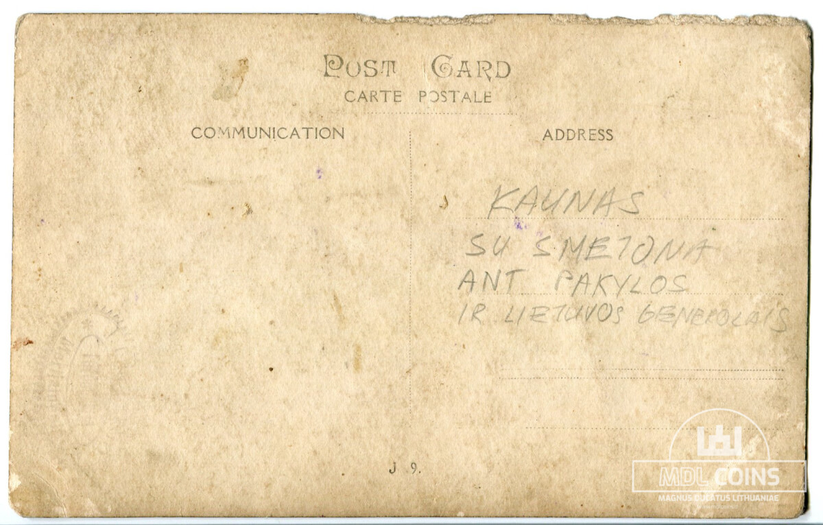 Antanas Smetona su karininkais priima Devintojo pėstininkų pulko karių rikiuotės paradą – Marijampolė, 1927 metai – 9 x 14 cm