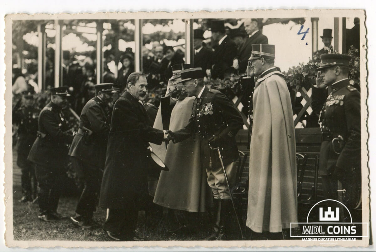 Antanas Smetona sveikinasi su užsienio šalių karo atašė – Kaunas, 1933 metai – 8,8 x 13,5 cm