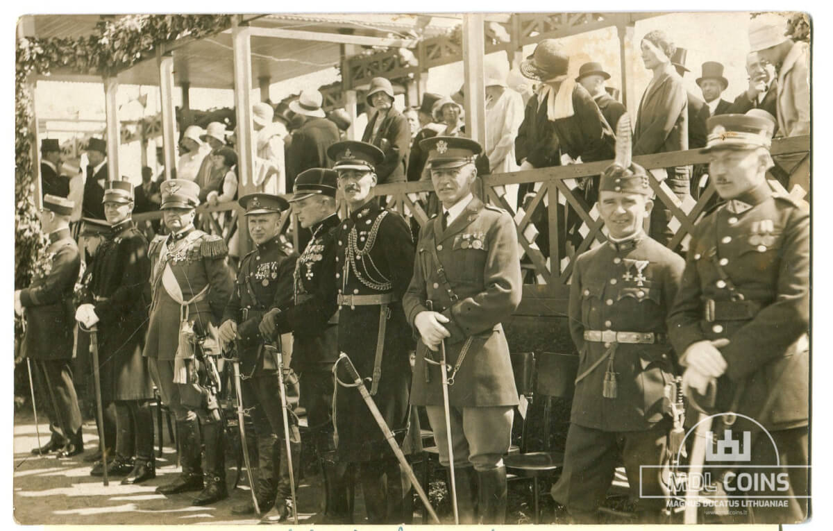 Antanas Smetona Tautos šventėje su užsienio šalių karo atašė – Kaunas, XX a. 4 deš. – 8,8 x 13,8 cm