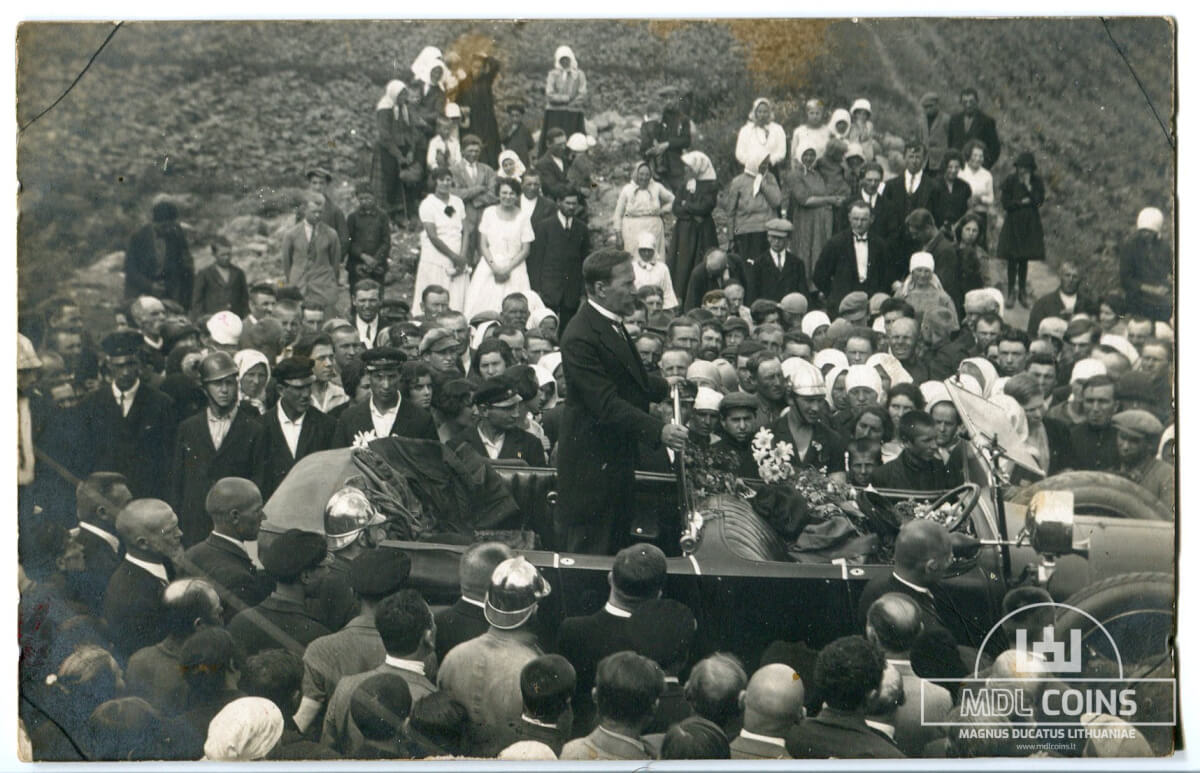 Minia, pasitinkanti atvykusį Lietuvos Respublikos Prezidentą Antaną Smetoną.