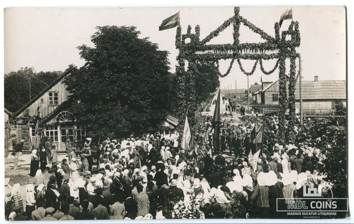 Joniškėlio gyventojai sutinka Lietuvos Respublikos Prezidentą Antaną Smetoną – 1927 metai – 8,7 x 13,8 cm