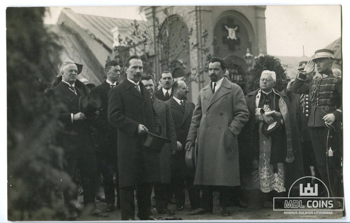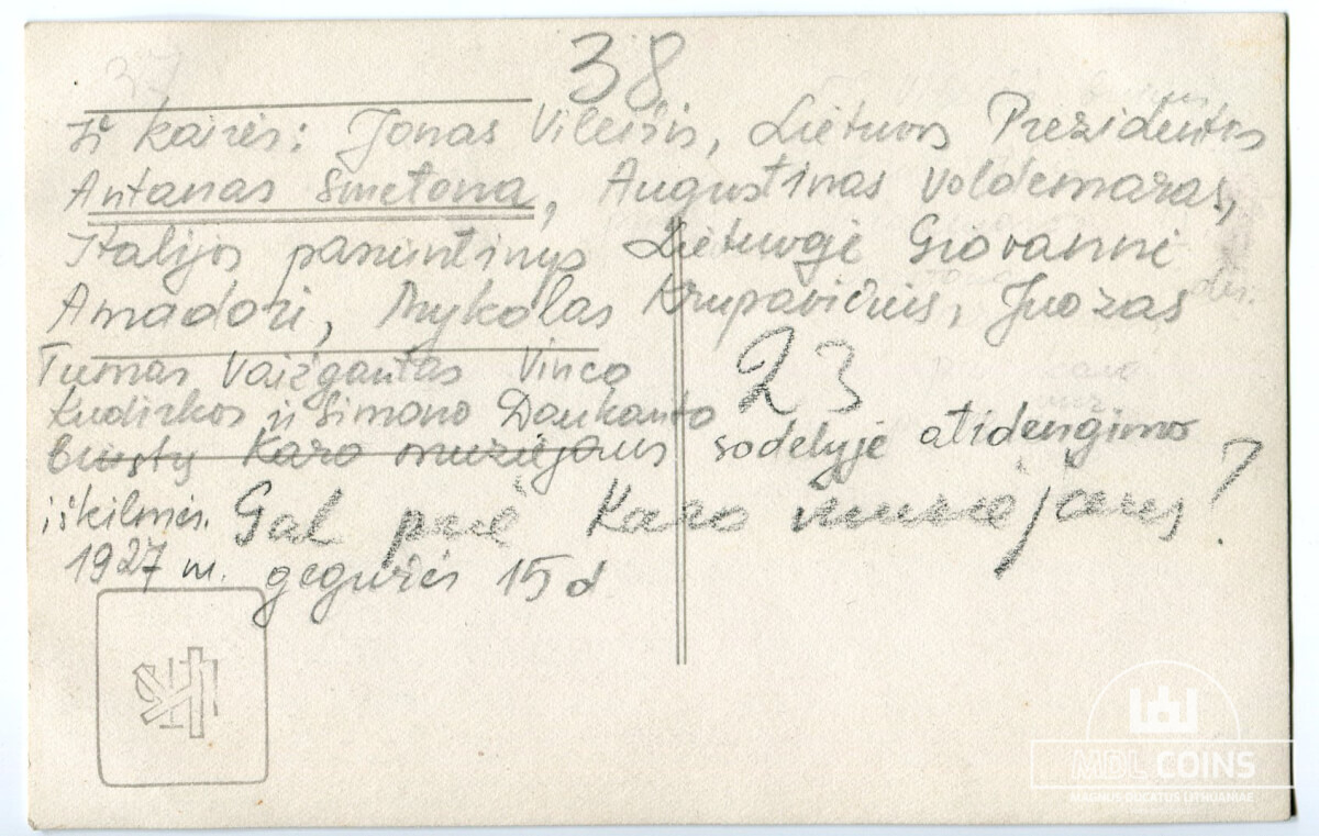 Lietuvos Respublikos Prezidentas Antanas Smetona ir kiti žinomi žmonės prie Karo muziejaus – 1927 metai – 8,8 x 13,7 cm
